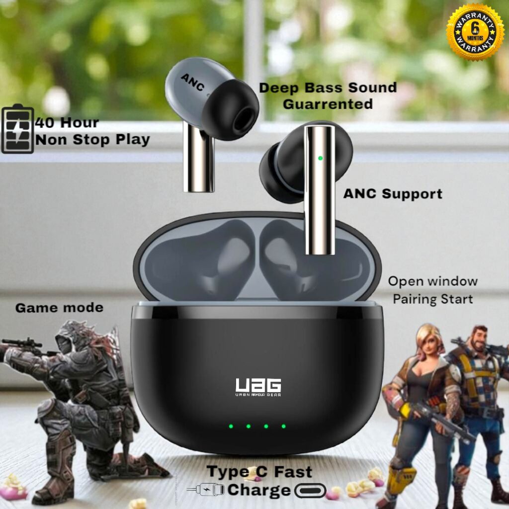 UAG Urbn Armour Gear 161x ANC Bluetooth gaming Airdopes are a popular choice for gamers who want the freedom of wireless connectivity without compromising on sound quality. Here are some key features and a to look for: Key Features Low Latency: Look for earbuds with low-latency technology to ensure audio and video are synced, which is crucial for gaming. Many gaming earbuds come with a “gaming mode” to reduce lag. Comfort and Fit: Since you might wear them for long gaming sessions, comfort is essential. Look for earbuds with different sizes of ear tips and ergonomic designs. Sound Quality: Good sound quality is important for both immersion and detecting in-game sounds. Look for earbuds with clear highs, balanced mids, and deep lows. Microphone Quality: A good microphone is essential for in-game communication. Some gaming earbuds come with noise-canceling mics or adjustable boom mics for clearer voice chat. Battery Life: Check the battery life of the earbuds and the charging case. You’ll want a setup that lasts through extended gaming sessions. Build Quality: Durability matters, especially if you’re traveling with them or using them frequently. Look for a sturdy build and water resistance if you need it. When looking for Bluetooth earbuds specifically for music, there are several features you should consider to enhance your listening experience. Here are some important aspects to look for: Key Features Sound Quality: Look for earbuds with balanced sound, good bass response, and clear mids and highs. Some earbuds offer customizable equalizers to tailor the sound to your preferences. Comfort and Fit: Ensure the earbuds come with various ear tip sizes and styles to get a secure and comfortable fit, especially for long listening sessions. Battery Life: Check the battery life of both the earbuds and the charging case. Longer battery life means less frequent charging. Noise Cancellation: Active noise cancellation (ANC) is great for immersive listening in noisy environments, while passive noise isolation can also help block out external sounds. Bluetooth Version: The latest Bluetooth versions (like 5.2) offer better connectivity, range, and efficiency. Controls and Features: Consider earbuds with intuitive controls for volume, playback, and calls. Features like voice assistant integration can also be a plus. Build Quality: Durability, water resistance (e.g., IPX4 or higher), and a quality build ensure the earbuds can withstand daily use and exercise