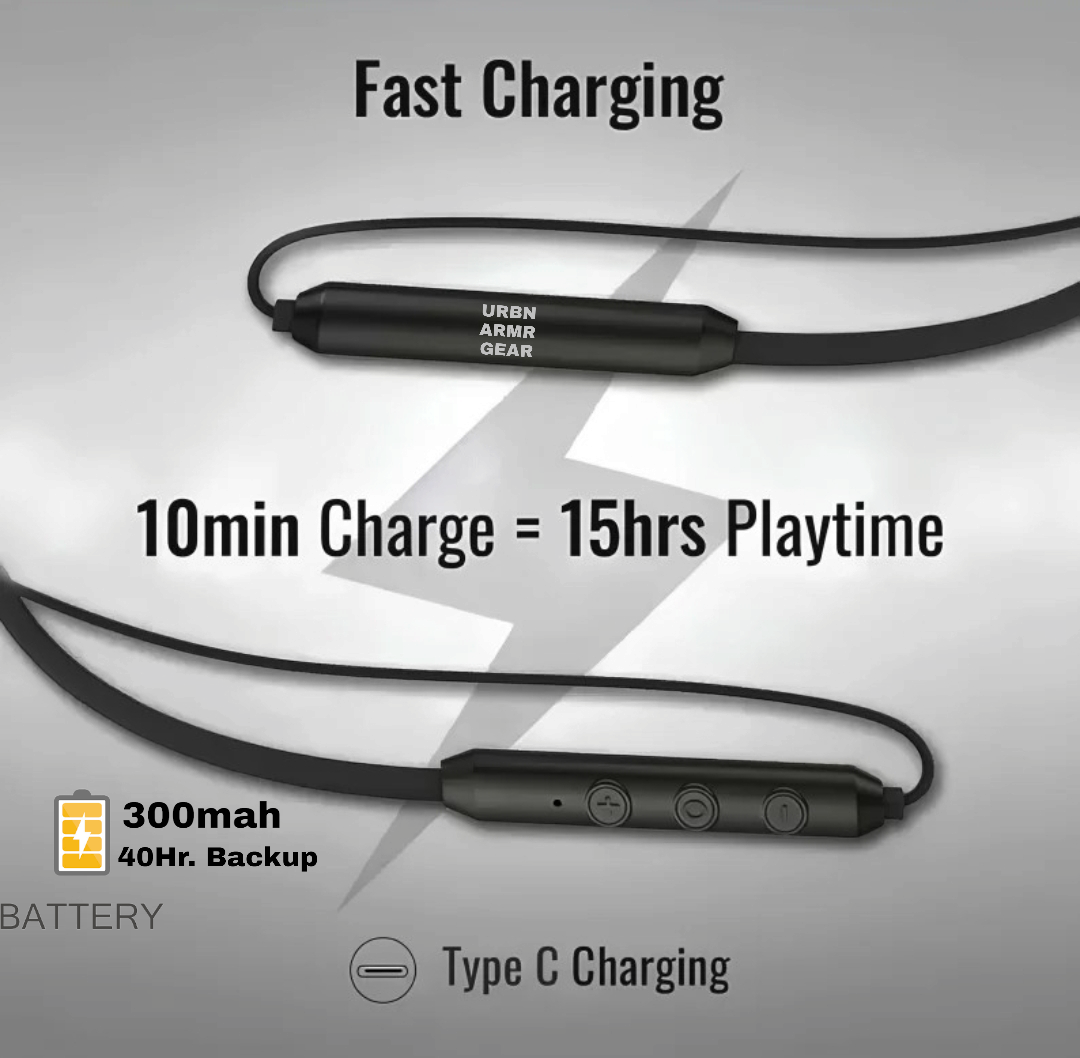 UAG urbn armour gear ANC Magnetic Neckband which comes with 50 hour Battery Backup and high Quality Design with Deep Bass sound with Gaming Chipset With cooper speaker and matel Ears or Type C fast charge or Vibration on calls and notifications Feature and Water or Dust proof