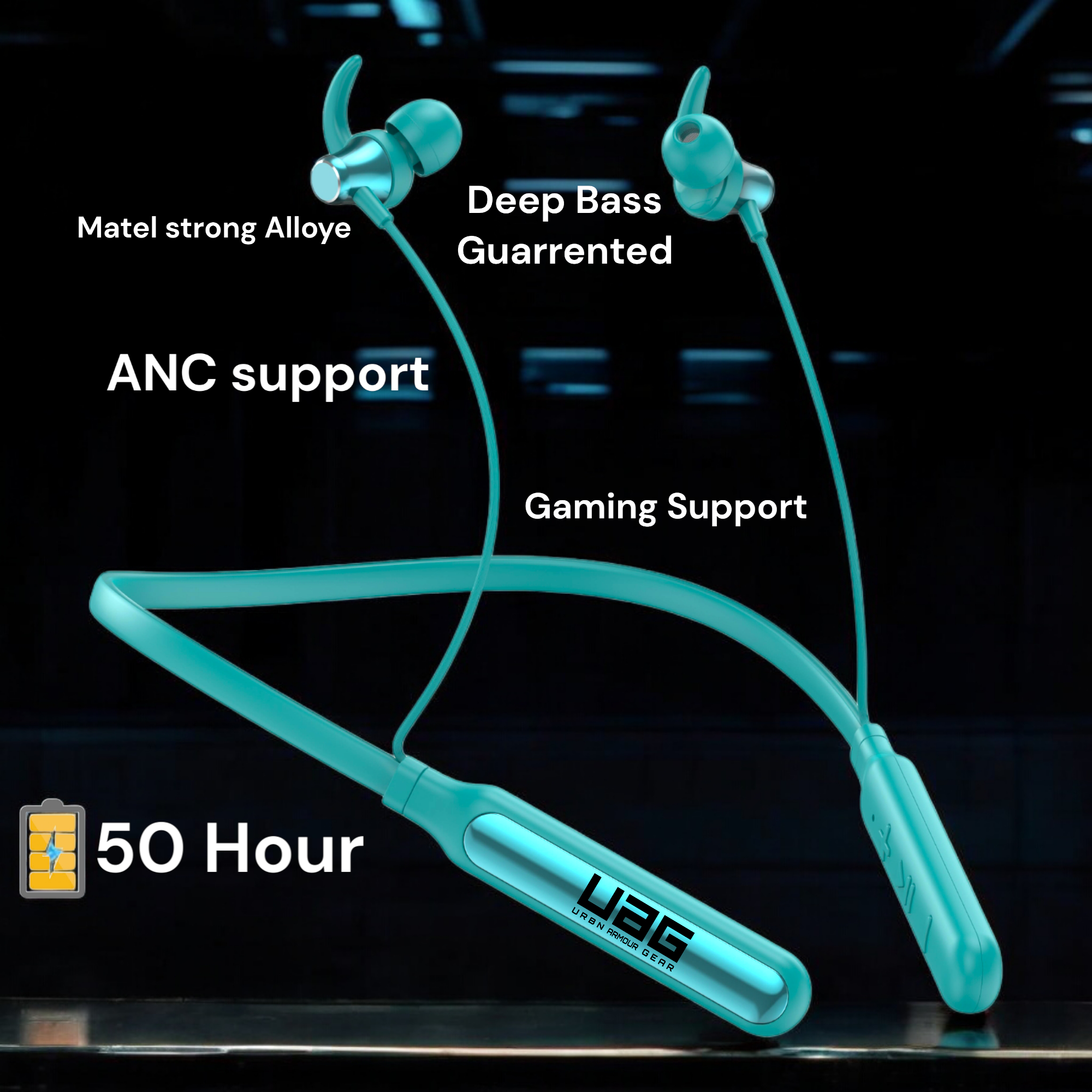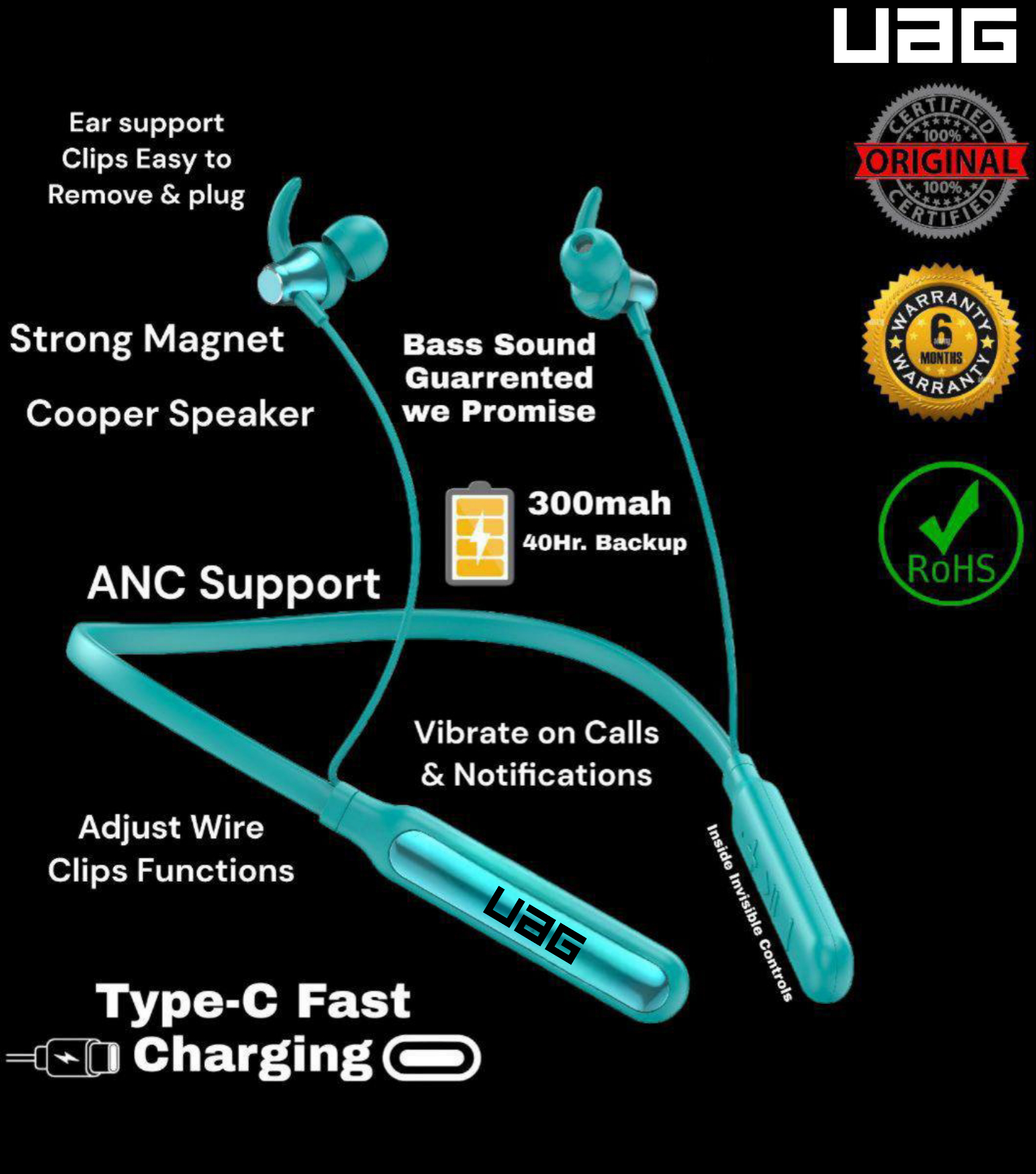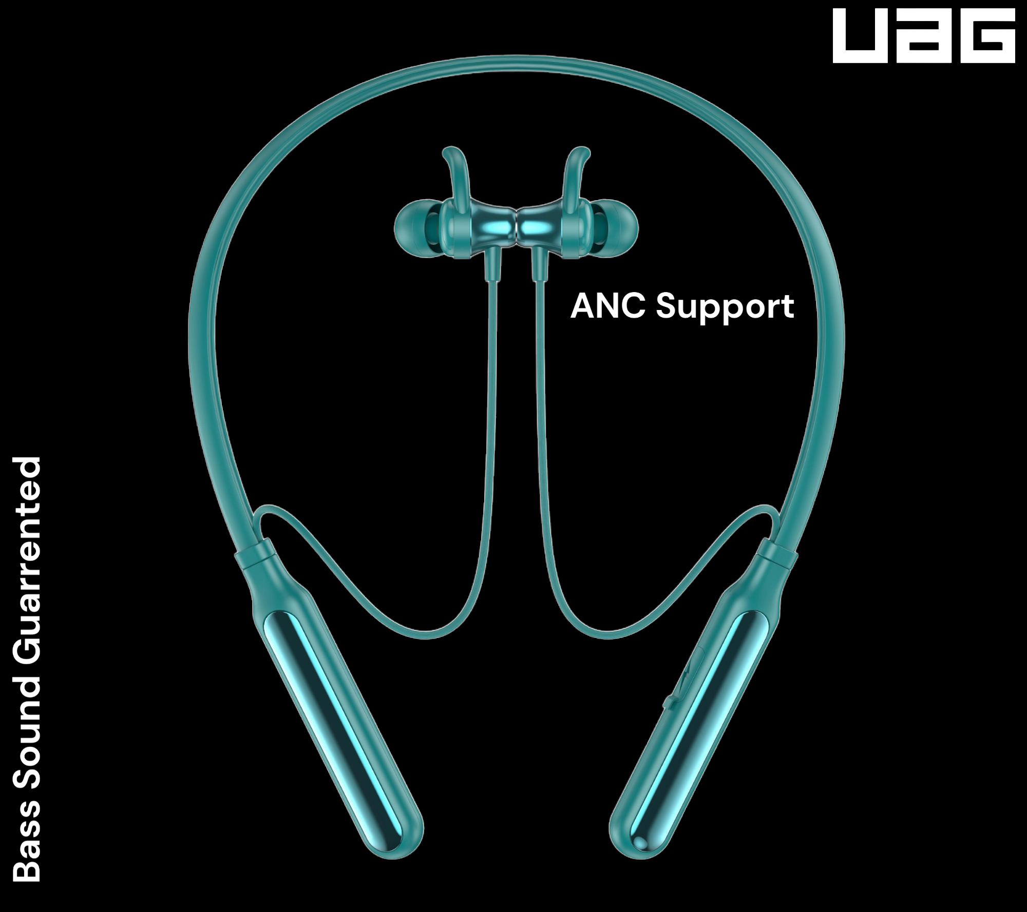 UAG urbn armour gear ANC Magnetic Neckband which comes with 50 hour Battery Backup and high Quality Design with Deep Bass sound with Gaming Chipset With cooper speaker and matel Ears or Type C fast charge or Vibration on calls and notifications Feature and Water or Dust proof