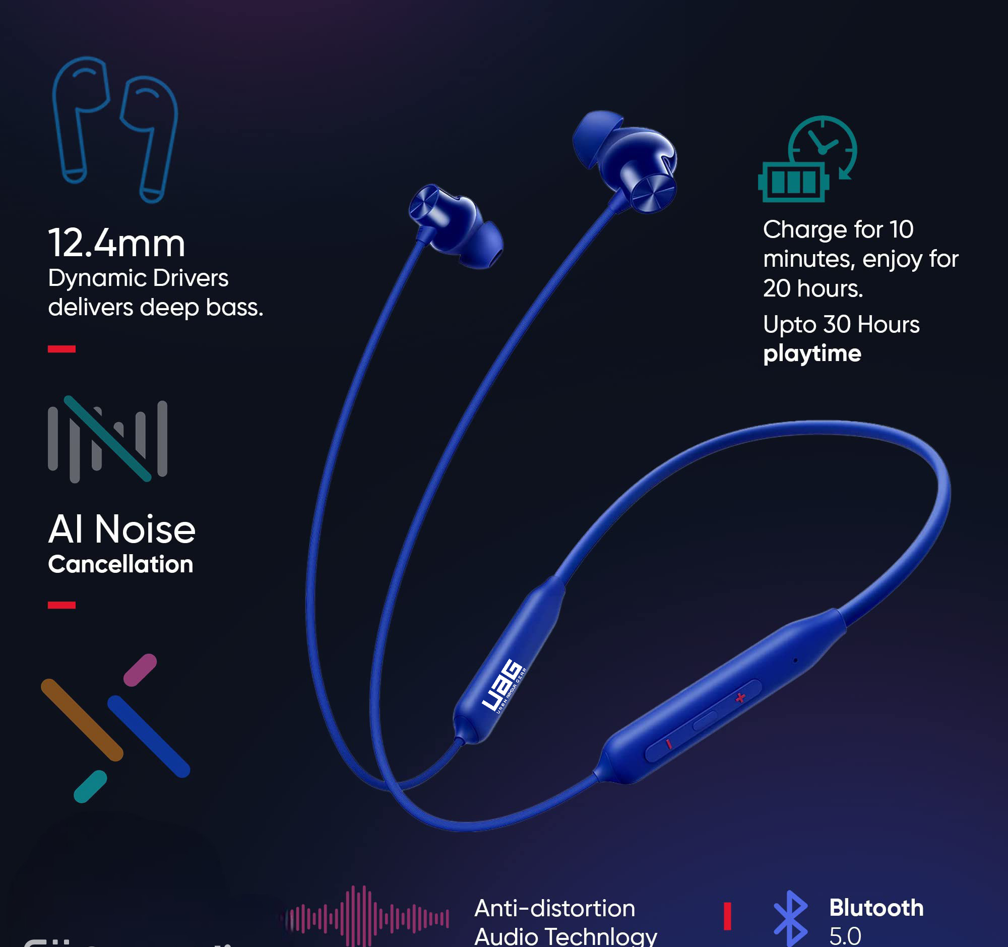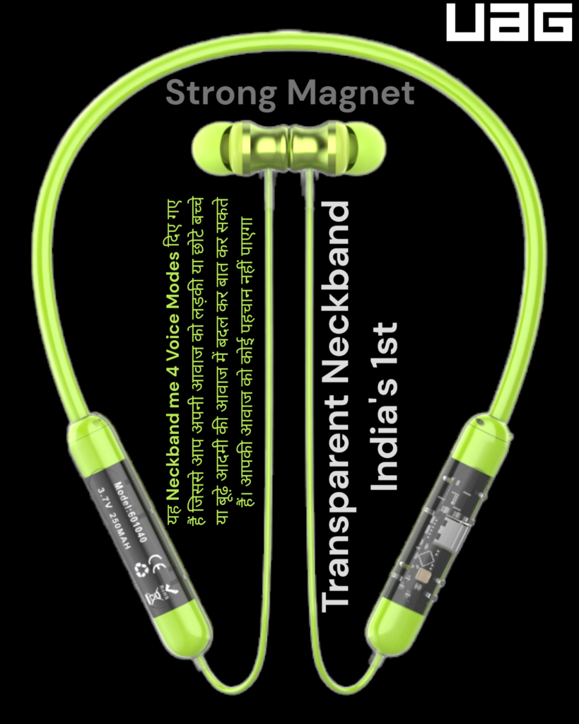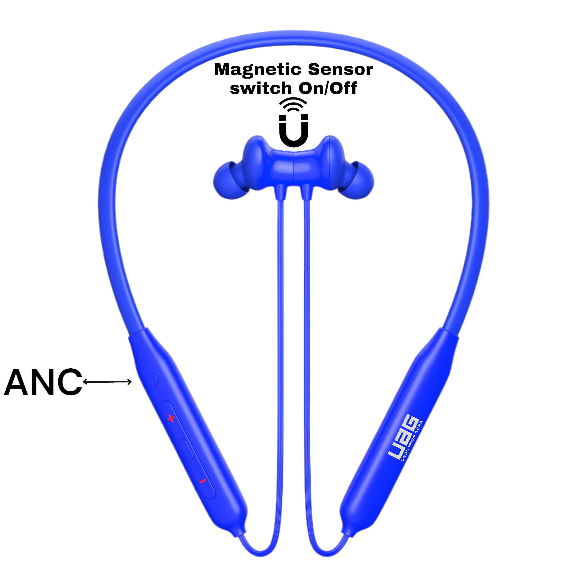 UAG Urbn Armour Gear Bullet z2 ANC Gaming & Music Magnetic Sensor ON/OFF Feature orignal Luxury Ultimate Design with Uniqe Royal Blue colour neckband which is comes with Deep Bass sound ANC protect feature OR Anti Dust Water ipx64 proof with Red safety OR 50hour battery backup. Bluetooth Connectivity: The neckband would have Bluetooth technology built into it, allowing it to connect wirelessly to other Bluetooth-enabled devices such as smartphones, tablets, or computers. This would enable the user to listen to music, take phone calls, or use other audio features without being tethered by wires. Magnetic Sensor On-Off: The magnetic sensor on-off feature could serve multiple purposes: Power Control: The neckband could have a magnetic switch that turns the device on or off. When the two ends of the neckband come together (where the magnets are located), it triggers the sensor to turn the device on. Conversely, separating the ends would turn it off. This feature can make it easy to power the device on or off with a simple gesture. Call Answer/End: Additionally, the magnetic sensor could be used to answer or end phone calls. For example, bringing the two ends of the neckband together could answer an incoming call, while separating them could end the call. Convenience and User Experience: Incorporating a magnetic sensor on-off feature adds convenience and improves the user experience by providing a simple and intuitive way to control the device’s power and certain functions without the need for physical buttons or complex gestures. Such a Bluetooth neckband with a magnetic sensor on-off feature would offer users a wireless and hassle-free audio experience with added functionality for easy control and management