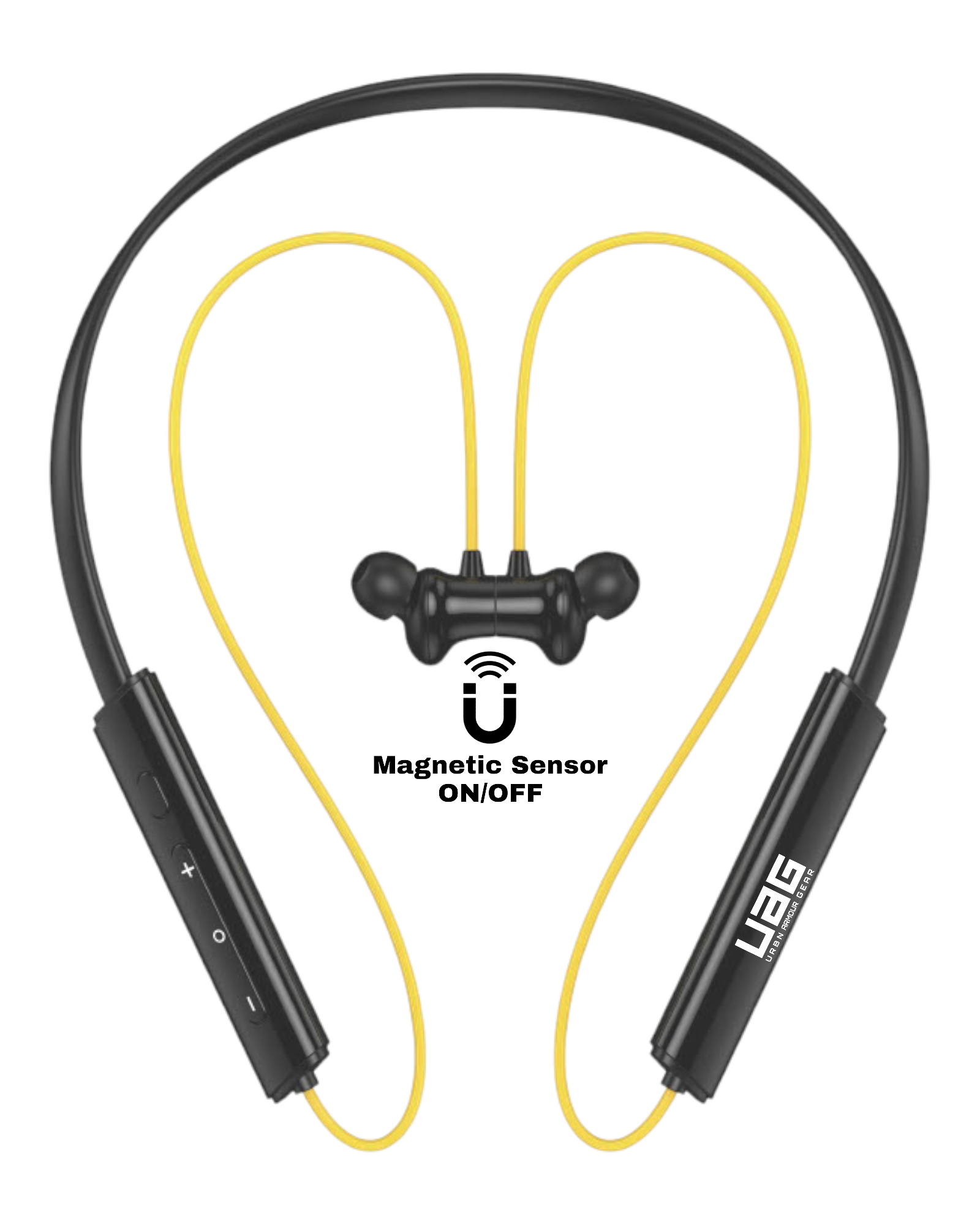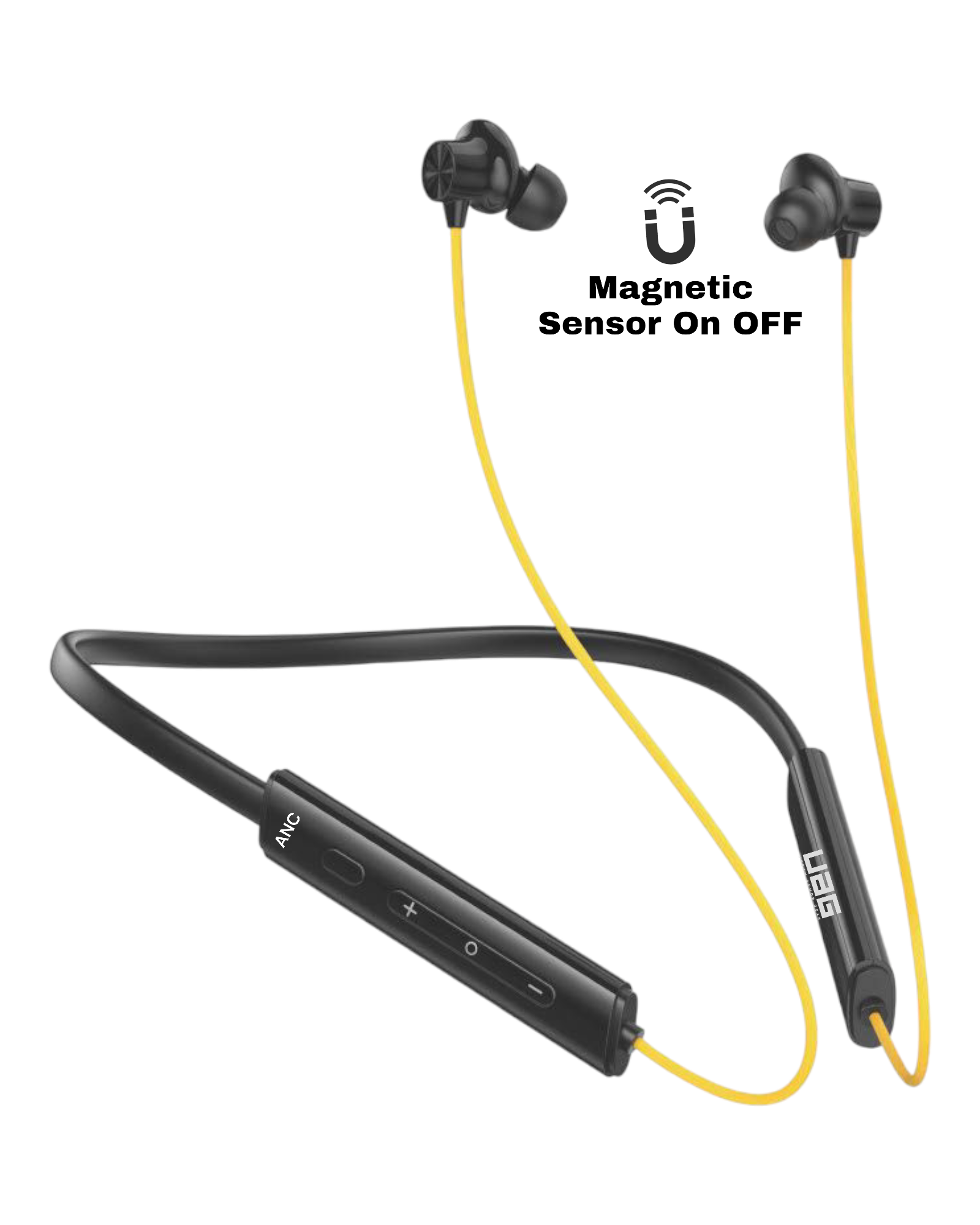 UAG Urbn Armour Gear Bullet z3 ANC Gaming & Music Magnetic Sensor ON/OFF Feature orignal Luxury Ultimate Design with Uniqe Black colour neckband which is comes with Deep Bass sound ANC protect feature OR Anti Dust Water ipx64 proof with Red safety OR 50hour battery backup. Bluetooth Connectivity: The neckband would have Bluetooth technology built into it, allowing it to connect wirelessly to other Bluetooth-enabled devices such as smartphones, tablets, or computers. This would enable the user to listen to music, take phone calls, or use other audio features without being tethered by wires. Magnetic Sensor On-Off: The magnetic sensor on-off feature could serve multiple purposes: Power Control: The neckband could have a magnetic switch that turns the device on or off. When the two ends of the neckband come together (where the magnets are located), it triggers the sensor to turn the device on. Conversely, separating the ends would turn it off. This feature can make it easy to power the device on or off with a simple gesture. Call Answer/End: Additionally, the magnetic sensor could be used to answer or end phone calls. For example, bringing the two ends of the neckband together could answer an incoming call, while separating them could end the call. Convenience and User Experience: Incorporating a magnetic sensor on-off feature adds convenience and improves the user experience by providing a simple and intuitive way to control the device’s power and certain functions without the need for physical buttons or complex gestures. Such a Bluetooth neckband with a magnetic sensor on-off feature would offer users a wireless and hassle-free audio experience with added functionality for easy control and management